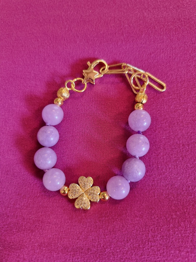 CHUNKY Armband aus Lavendel Amethyst mit 10 mm großen Perlen und einem besonderen Zirkonia-Clover als zentrales Element.
