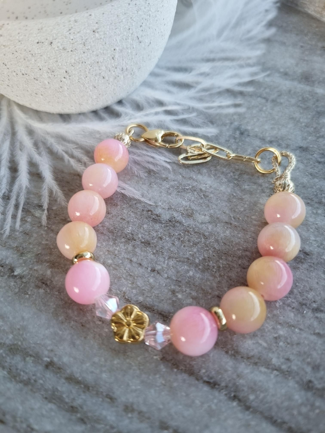 Handgeknotetes Armband aus Persischer Jade mit hochwertigen, 18k vergoldeten Elementen und Kettengliedern