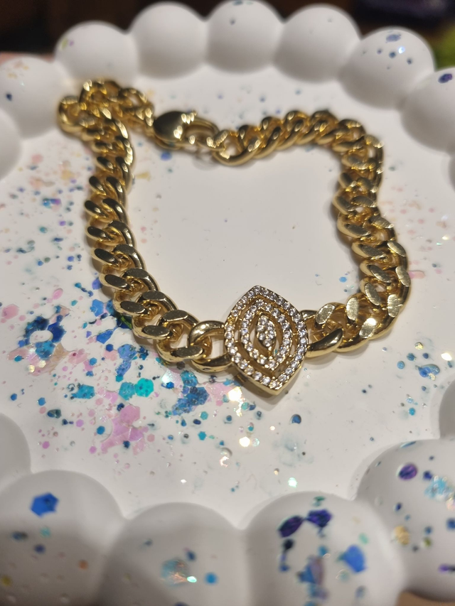 massives Panzerarmband mit zirkoniabesetzem Evil Eye