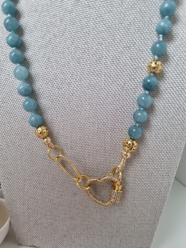 ILVIE GEMS, Jade in blau, handgeknotet