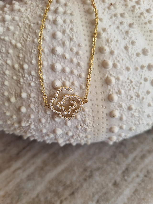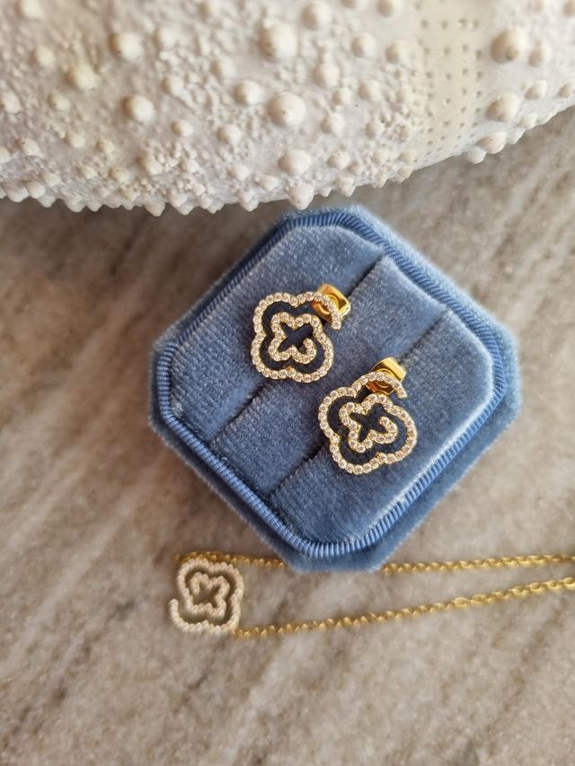 Schmuckset Lucky Clover aus vergoldetem Edelstahl mit Zirkonia