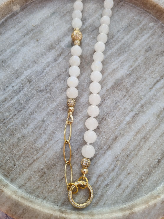 Handgeknotete Edelsteinketten aua grossen Regenbogen-Mondstein-Perlen