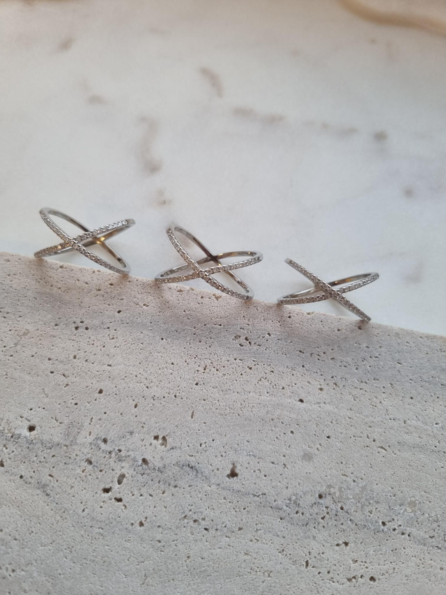 Cris Cross Kreuzring mit zarten Zirkoniasteinchen